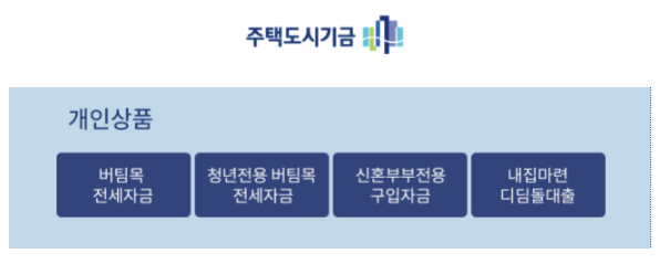 주택도시기금 소개, 주택구입(내집마련디딤돌 등), 전세자금, 월세대출, 국민주택채권, 주택청약, 신혼부부대출